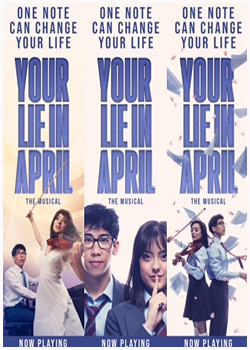 West End. Your Lie in April, is an adaption of a manga favourite story, brings to life the poignant story of Kōsei Arima, a young piano prodigy, and his inability to play following his mother’s death. He strikes a friendship with violinist Kaori Miyazono and she slowly encourages him to perform again.